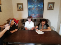 Conférence de Presse En présence des associations et de plusieurs personnalités dont M. Soslan FRAEV Chef du District de la Rive Droite et M. Stanislav DZEBOEV Maire de Beslan depuis novembre 2017. |